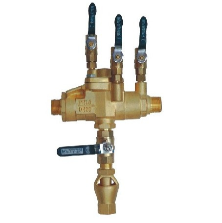 ![]() 安全型防污隔断阀是在两个止回阀之间加一个排水器组成。排水器上腔用高压软管与一级止回阀进口端连接。第一,二级止回阀主要由阀体、阀盖、阀瓣、密封垫、弹簧等组成。排水器主要由阀体、阀盖、隔膜、阀瓣、密封板、阀芯、阀座、弹簧等组成。普通型防污隔断阀为两个止回阀串联而成。
